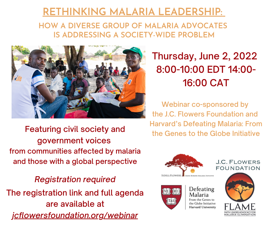 Join this webinar on 2 June hosted by the J.C. Flowers Foundation and Harvard’s Defeating Malaria Initiative.