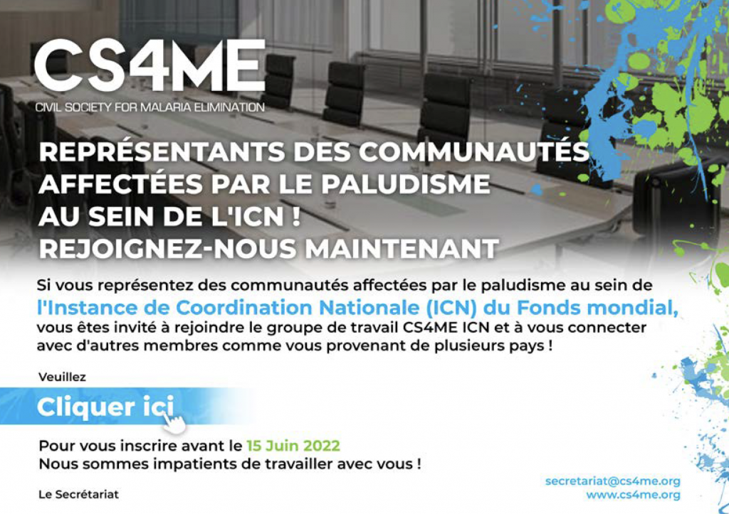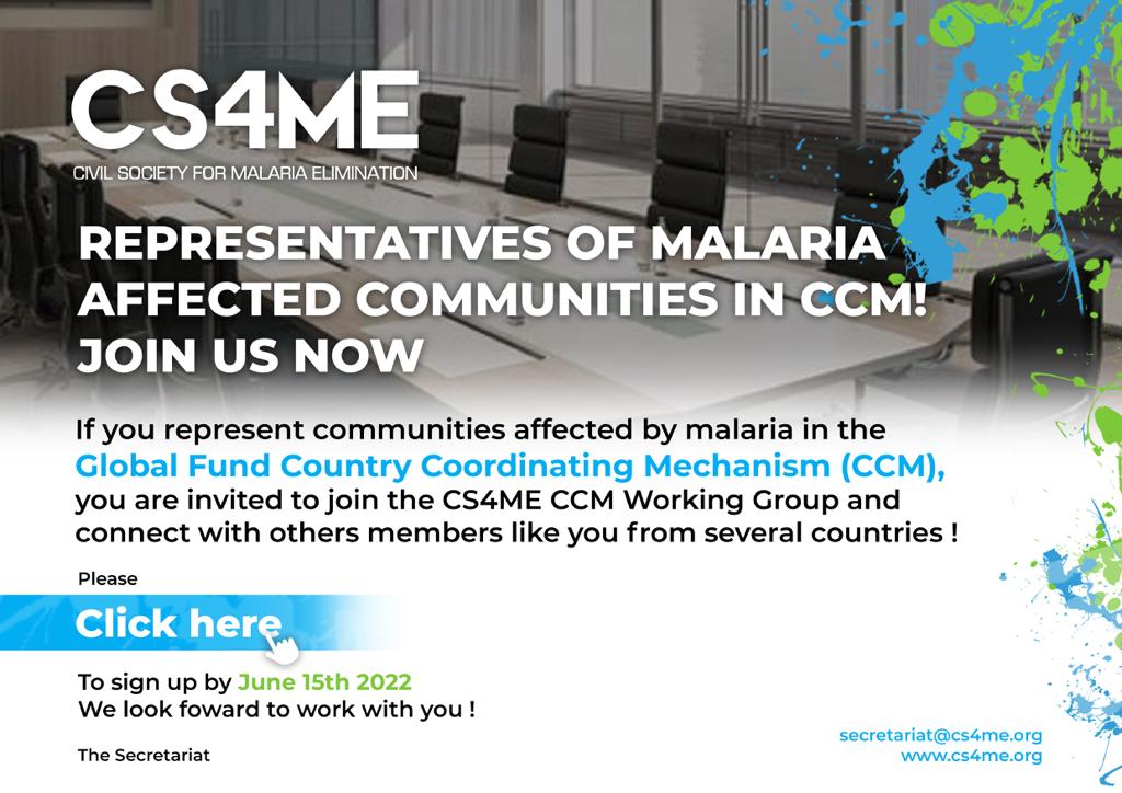 If you represent communities affected by malaria in your national CCM then don’t miss this opportunity CS4ME CCM working group.