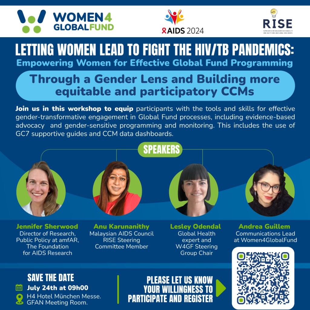 As we approach the AIDS2024 Conference, Women4GlobalFund (W4GF) is excited to invite all attendees to join a transformative workshop dedicated to empowering women in the global fight against HIV and TB. This workshop, “Letting Women Lead to Fight the HIV/TB Pandemics: Empowering Women for Effective Global Fund Programming,” promises to be a pivotal event focused on gender-sensitive and transformative health services.