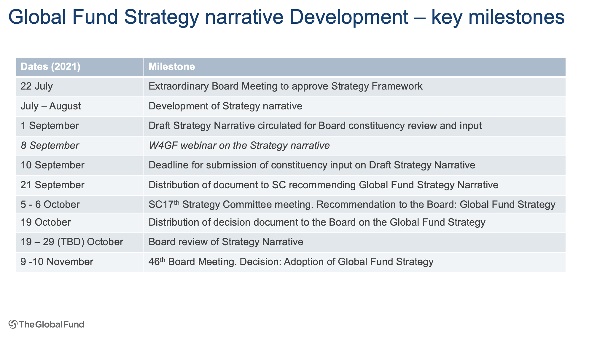 UPDATE ON GLOBAL FUND STRATEGY DEVELOPMENT PROCESS