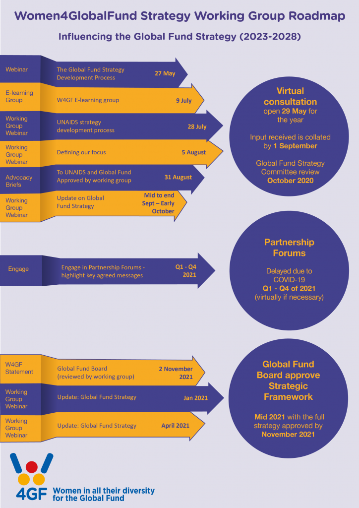 The Global Fund Advocates Network (GFAN) has collated key information through a dedicated section on the new Strategy and developed a regularly updated summary of top-level priority areas for civil society and communities based on inputs from around the world (including from W4GF). GFAN have also recently created a toolkit to supporting advocacy as this process moves forward – check this out here.